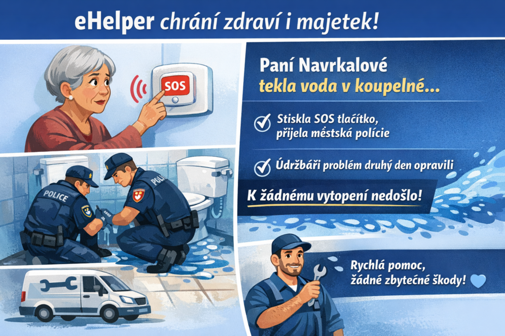 Když paní Navrkalová viděla únik vody, využila SOS tlačítko, aby okamžitě přivolala pomoc. SOS tlačítko je určeno pro akutní situace a zajišťuje rychlý zásah – přesně tak to fungovalo i v tomto případě.