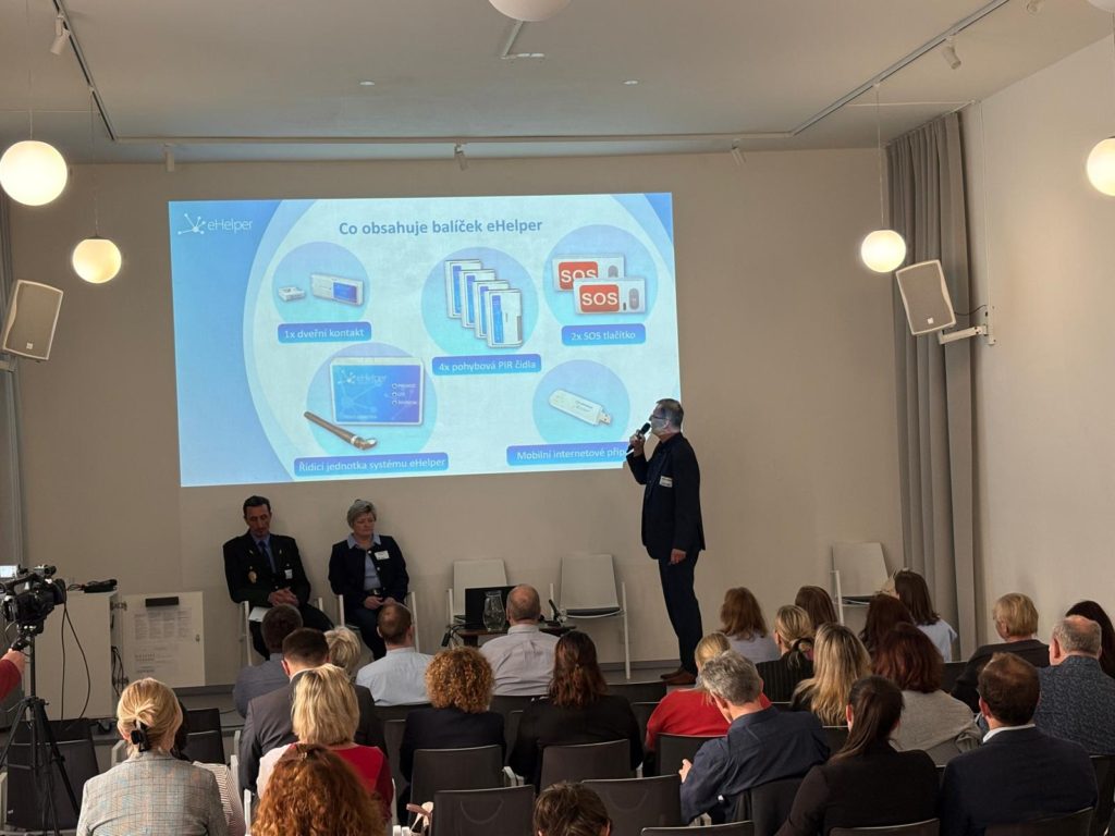 Na konferenci jsme prezentovali systém eHelper, který zvyšuje bezpečnost klientů v pobytových zařízeních i v domácí péči. Díky modulárnímu systému, který nevyžaduje přímé nošení zařízení klientem a funguje i bez připojení k internetu, umožňuje personálu rychle a efektivně reagovat na případné rizikové situace.